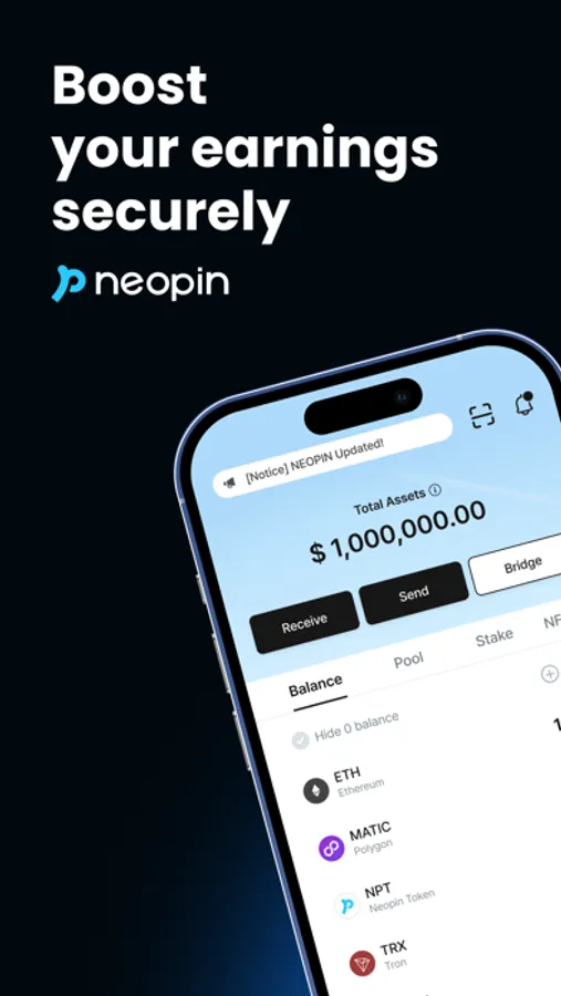 - NEOPIN wallet offers DeFi products from various networks such as Ethereum, Polygon, Cosmos, Finschia, Klaytn, Tron and continues to add support for more networks.