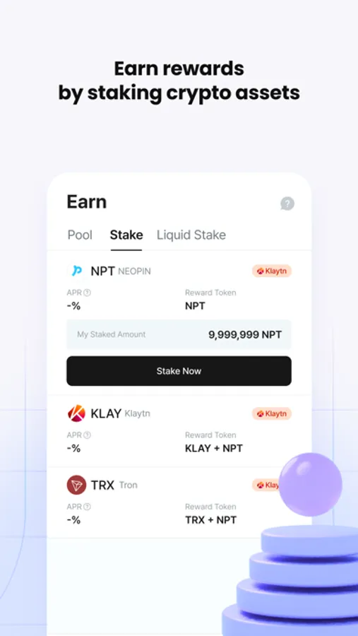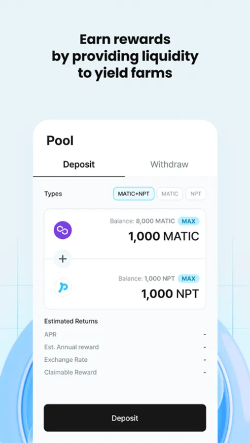 - Experience the convenience of Staking, Liquidity Staking, Pool Deposit and NFT available with minimal steps required