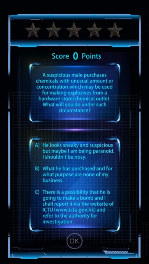 The global terrorist threat situation remains complex and ever-changing in recent years, posing grave challenge to security worldwide, including Hong Kong. This AR experience aims to enhance public's CT awareness, particularly in identifying suspicious persons, objects or activities; and to equip the public with sufficient emergency response capabilities.