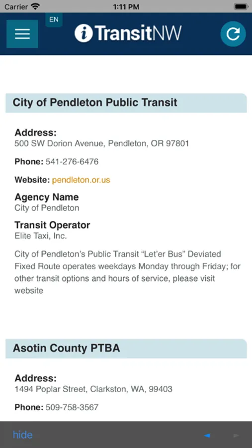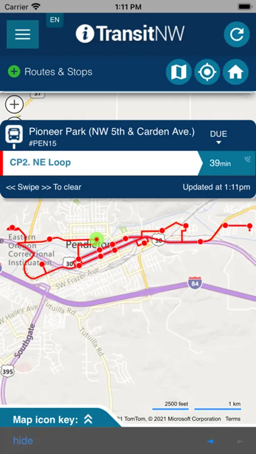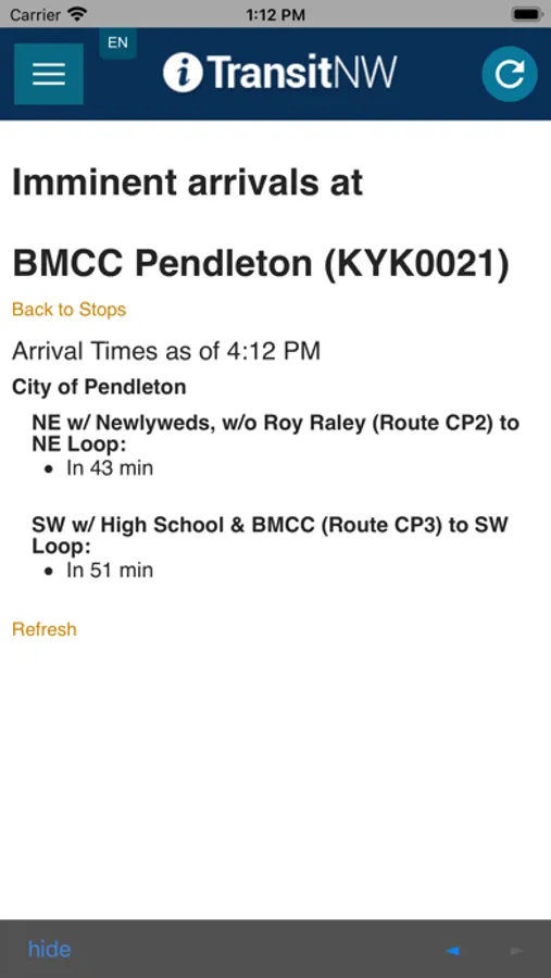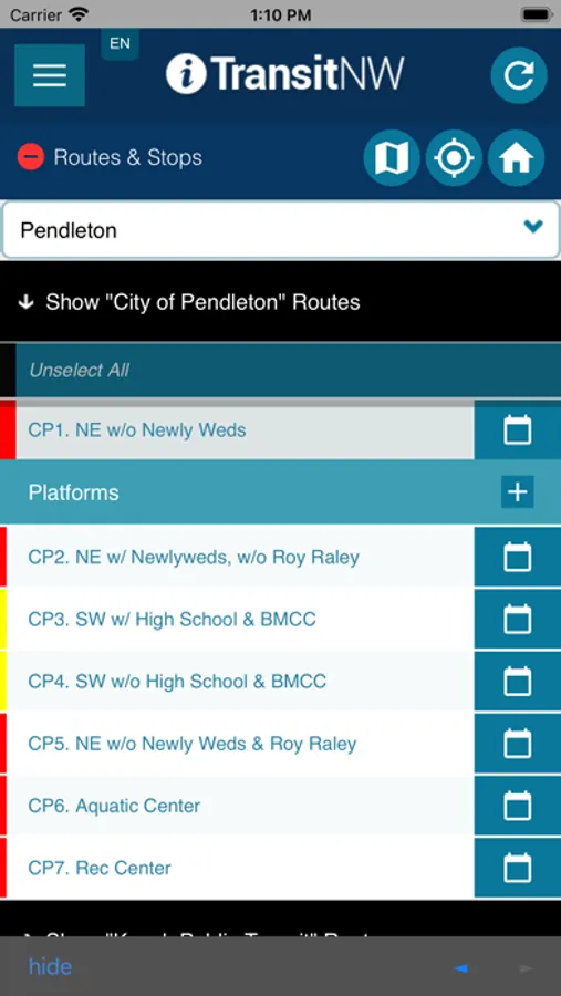 Find the nearest bus stop to your current location (requires GPS/location services to be enabled on your device), view an ETA for your bus and view its current position Save your favourite stops and routes and access bus schedules. City of Pendleton bus service.