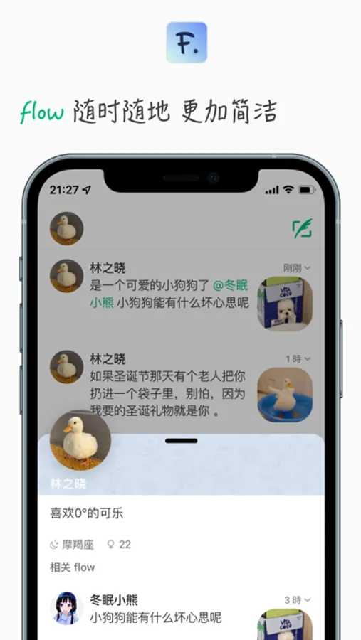 flow 致力于为每个人创造属于自己的杂感小天地,远离 AI 推荐和信息过载。以140 字的图文来展现日常生活轨迹。