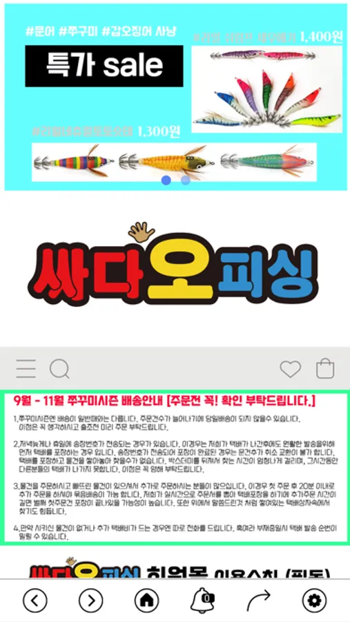바다 생활낚시 전문 쇼핑몰 싸다오 피싱 회원몰