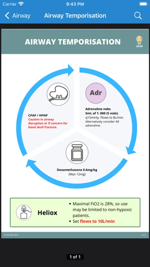• Complete ASCAR library: automatically updated suite of cognitive aids from the ASCAR group across the whole array of anaesthetic sub-specialties.