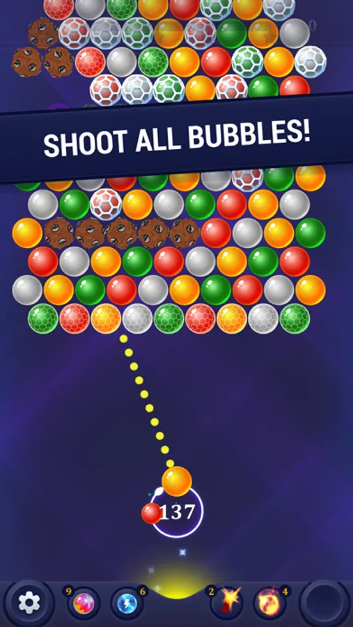 Aim & shoot, drop & burst colorful bubbles complete the mission. Challenge yourself a little extra with each level unlocked and win exciting rewards and stars. Earn coins while you play and use them to get cool boosters. Dive deep into the world's colorful break free balloon-bursting adventure with brain-teasing puzzles and addictive levels. A never-ending ball burst journey with spectacular animation, daily rewards, challenging levels, spin wheel, powerups, and bombs.