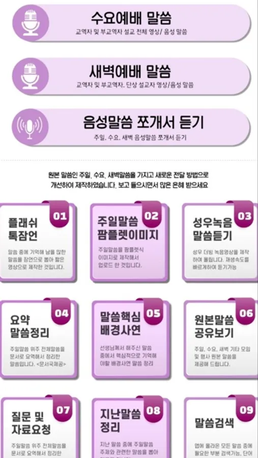 가. 비대면 예배로 인하여 각종 예배말씀을 제공해 드립니다. (예배영상, 문서말씀 등등)