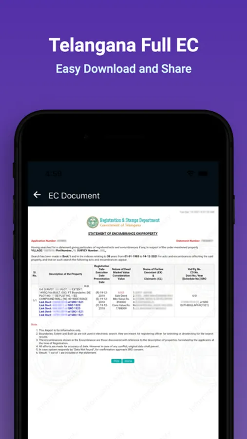 - Instant property documents like Encumbrance Certificate (EC), RoR, Adangal, Patta/Chitta