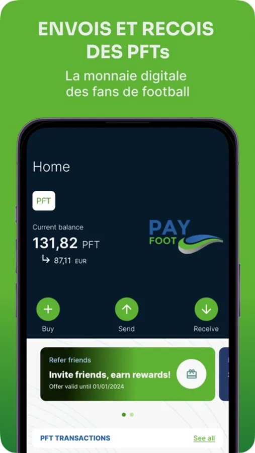 Payfoot is the new fast, secure and social way to make digital payments in the football and sports industry. You just need to scan a QR code to send and receive cost-efficient, cross-border money transfers in real-time. Pay with the PFT, the currency of your passion!