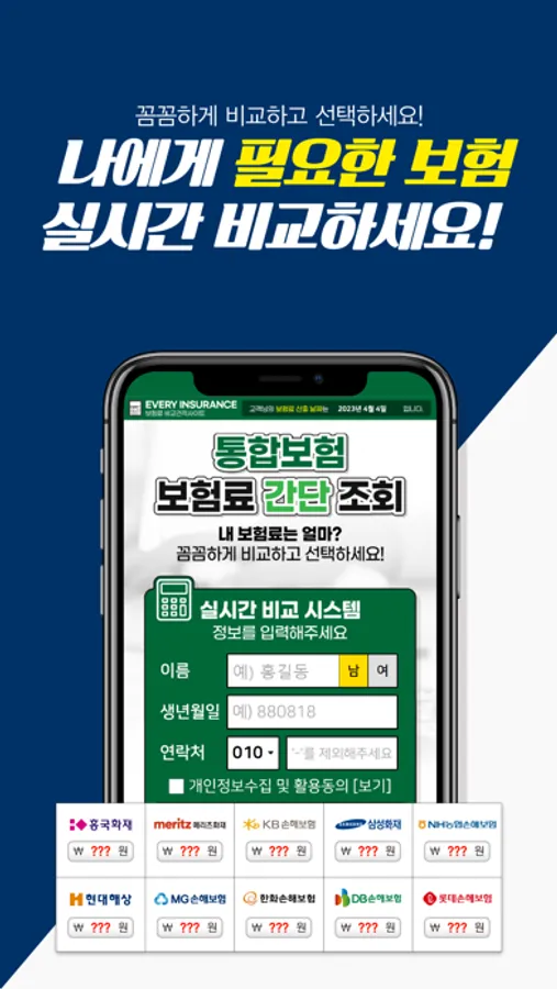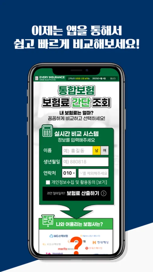 간단한 정보 입력만으로 스마트폰으로 통합보험을 확인하고 비교하실 수 있습니다.