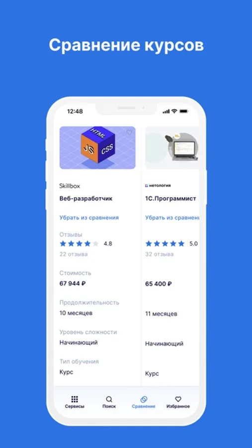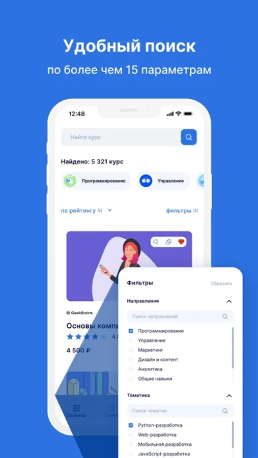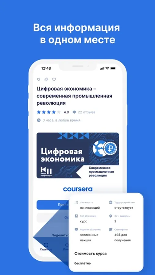 - Доступ к актуальной, максимально полной и структурированной базе данных образовательных курсов (платные и бесплатные курсы).
