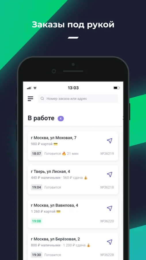 Значительно сокращает время на получение заказа курьером и позволяет оптимально распределять время.