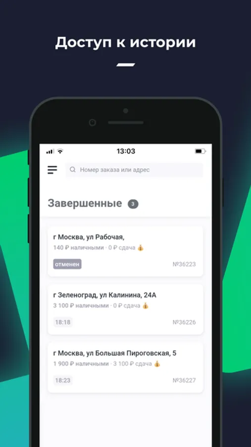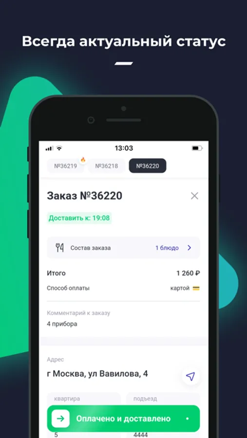 - Заказ автоматически появляется в приложении r_k Courier APP