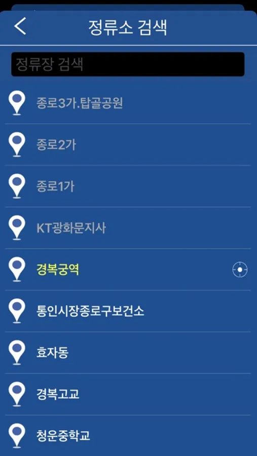 버스 호출은 [경복궁역, 신교동, 통인시장종로구보건소, 효자동]에서만 가능