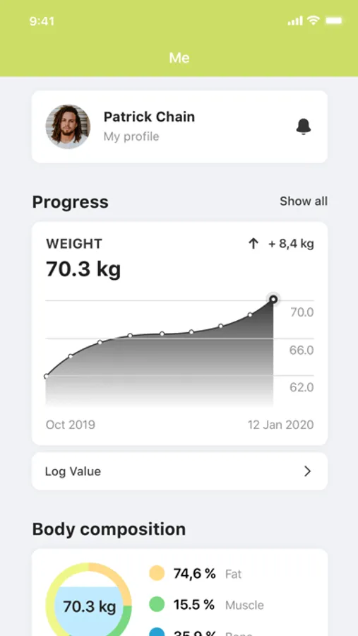 Desde el peso levantado o perdida de masa grasa, esta aplicación actúa con su propio entrenador personal para que le de la motivación que necesita.