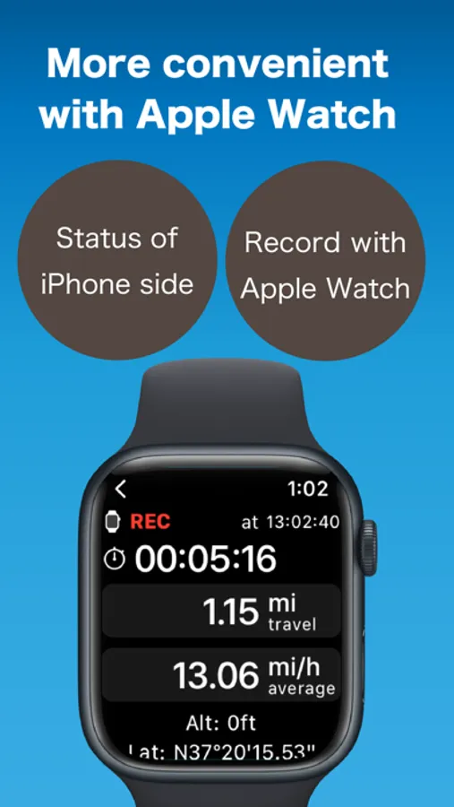 It is compatible with Apple Watch, so you can check the distance traveled, average speed, average pace, etc. while recording without taking out your iPhone.