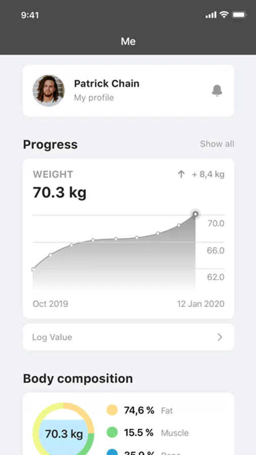 - Je gewicht en andere statistieken invoeren en je voortgang bijhouden