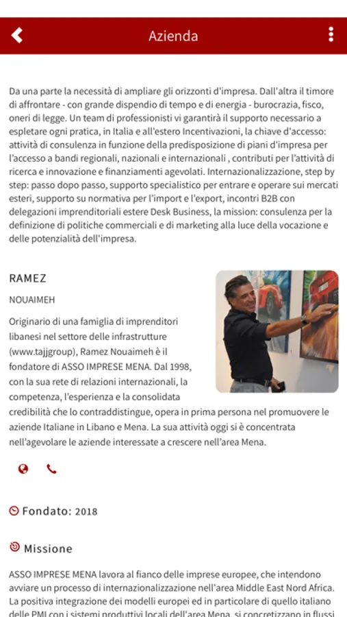 Asso Imprese Mena è un'App per mettere in collegamento tutte le Aziende che vogliono creare rete fra loro. L'Azienda ha la possibilità di creare la propria vetrina con i dati di riferimento, il logo e le sue caratteristiche. Le Aziende comunicando direttamente avranno la tangibile realtà di proporre offerte e richiedere preventivi.