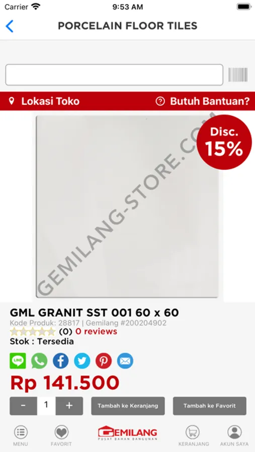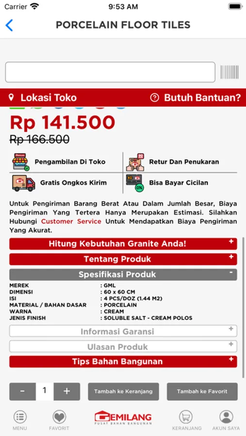 ● Belanja aman dengan Garansi Gemilang Pusat Bahan Bangunan.