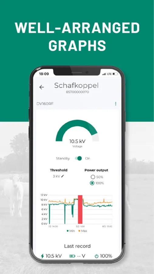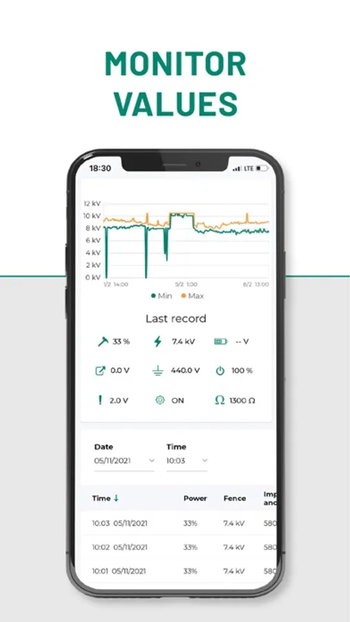 The user has clear access to all the main information about the fence and has the option to set an alarm for each generator and monitor, which will alert you to exceeding the set limits.
