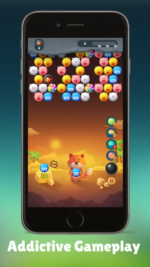 - Tap to aim and release to shoot the selected bubble