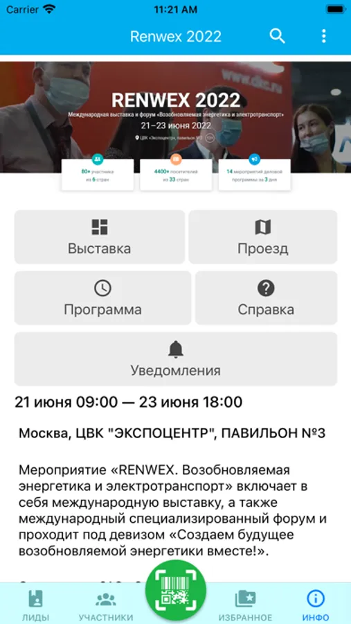 • compose your own visit program and receive notifications about the start of selected events;