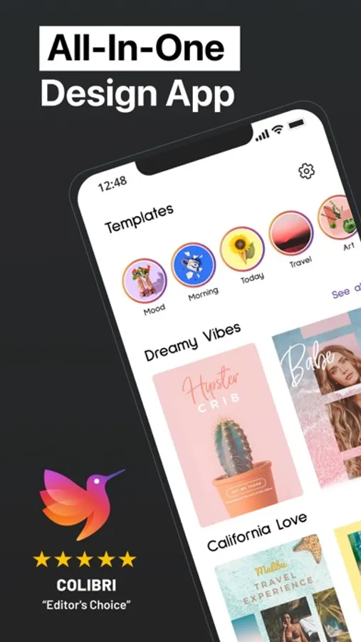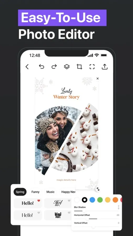Create captivating story designs with photos and video in a few steps. Add sleek fonts and stickers, and get amazing responses that will boost your appearance, brand, and personality. All that without any knowledge or background in design. You just need your iPhone.