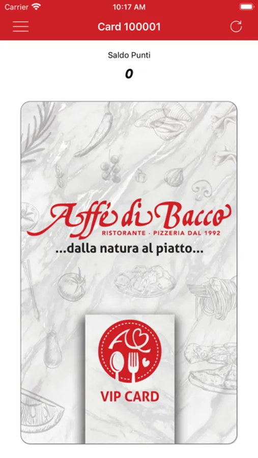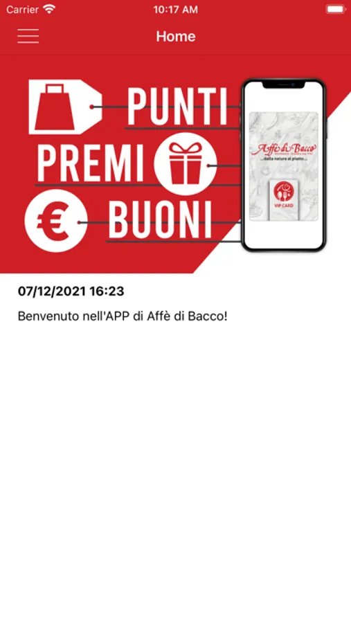 La fidelity card di Affè di Bacco che premia i propri clienti.