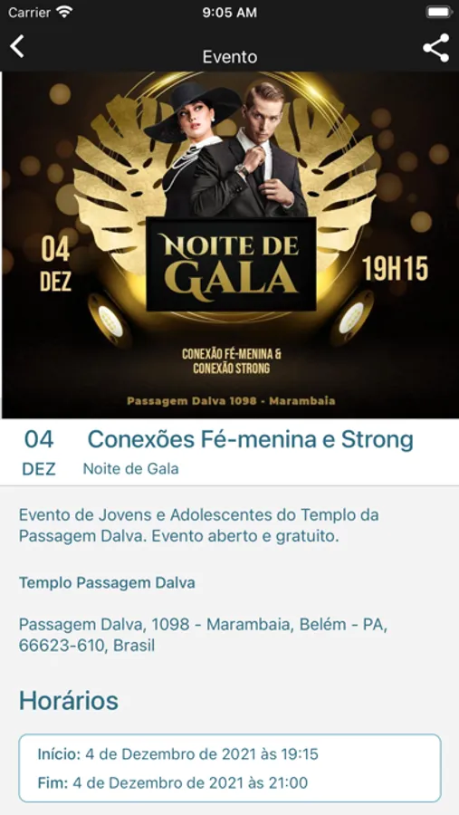 - Declaração de fé, horário dos cultos