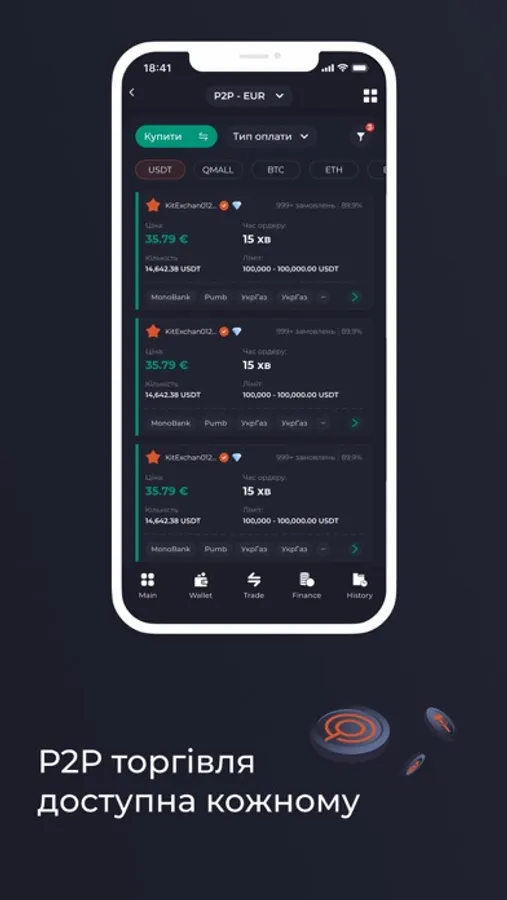 Qmall Exchange App - дає вам можливість торгувати на біржі прямо із вашого смартофона! Прилад дозволяє використовувати абсолютно всі функції біржі.