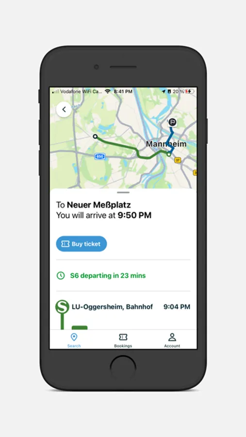 Überregional mobil: rnv/VRN.Deutschland liefert Fahrplanauskünfte inklusive des Fernverkehres und ein multimodales Routing mit Bike-, Scooter- und Car-Sharing innerhalb der teilnehmenden Regionen.