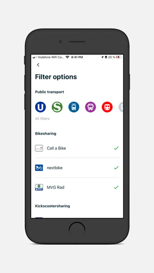 • Multimodal: Die Auskunft umfasst die Sharing-Angebote von ShareNow, Miles, Tier, Call a Bike, nextbike, MVG Rad München