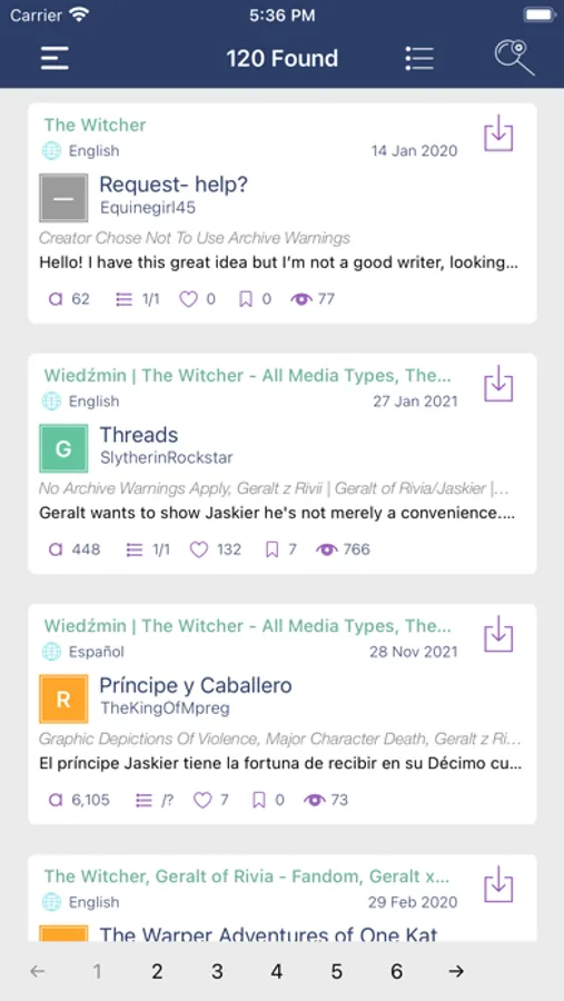 Works are not stored anywhere in the app nor on other websites, this is just reading-browsing app like any other browser you can use to read stories.