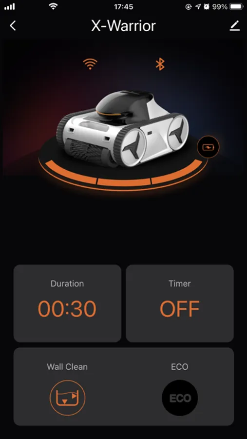 Click "Wall Clean" to turn on and off the pool wall cleaning function.
