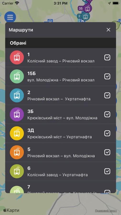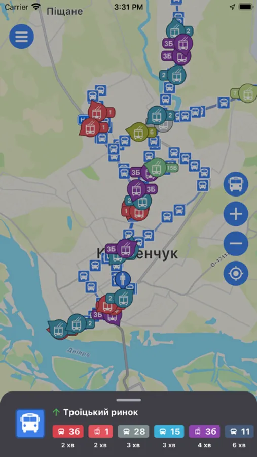 The app will help you track buses, trolleybuses, and minibusses of Kremenchuk. You can find out the time of arrival of transport to the bus stop and display only routes you need to