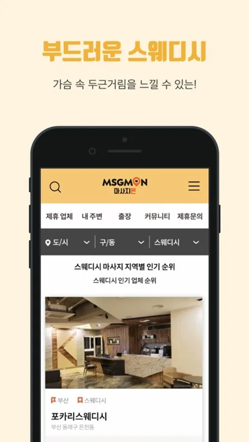 또한 실제 스웨디시샵을 다녀온 이용자들의 리얼 방문 후기를 통해 보다 나에게 맞는 최적화된 마사지샵을 찾을 수 있습니다.
