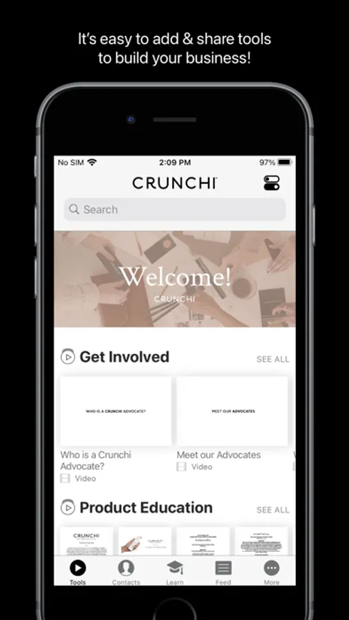 With the Crunchi Tools app, you can easily share your way to success with tools that create word-of-mouth buzz and complement belly-to-belly efforts! Connect with new contacts and interact with your team by sharing exclusive, corporate-approved tools. You’ll have a vast array of marketing materials like videos, images, and more—all right at your fingertips! The powerful, yet beautifully simple design, along with compelling tools, makes growing your business simpler than ever.