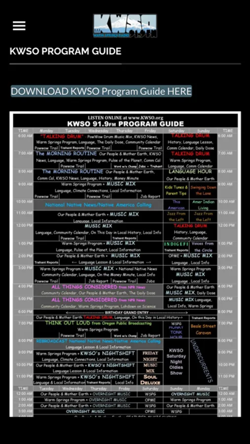 The KWSO App allows you to listen to KWSO 91.9 FM, pause and rewind the live audio, view the program schedule, and wake up to KWSO with the alarm clock!