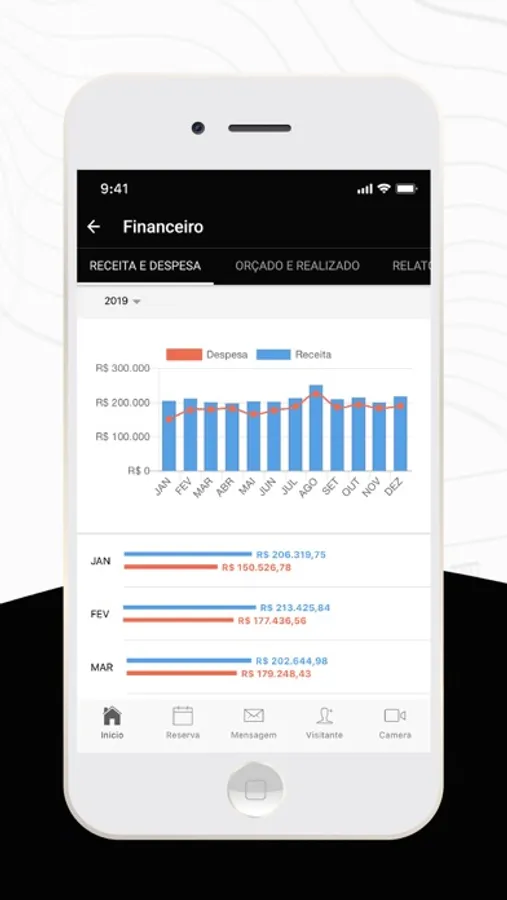 - comparativo de orçado versus realizado (gráficos e detalhamento)