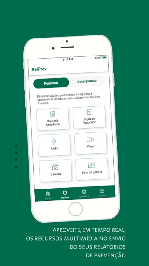 Nele, os clientes e colaboradores poderão realizar o Relprev direto do celular com mais agilidade, praticidade e com recursos mais avançados para inclusão de multimídias, como áudios, vídeos e fotos.