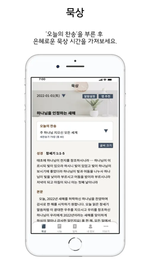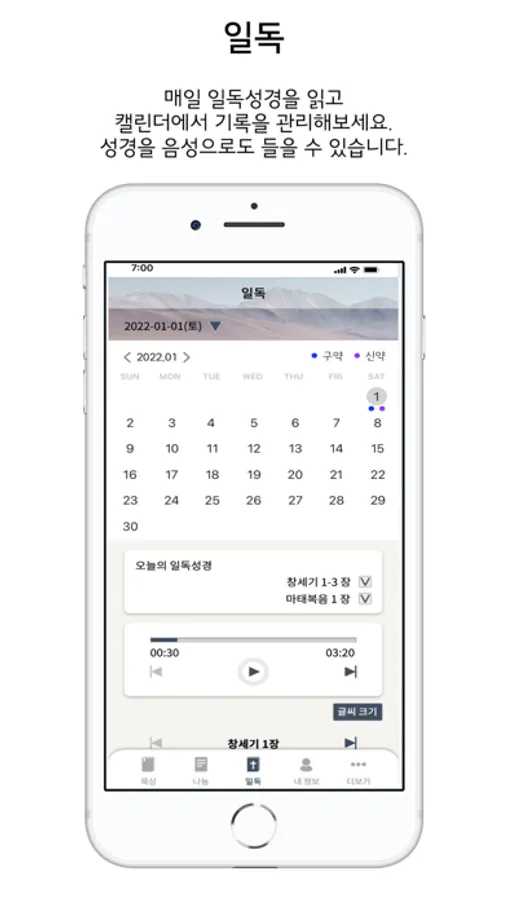 7. ‘일독’에 따라 성경을 읽으십시오. 2022년 한 해 동안 구약 1번, 신약 2번을 읽게 됩니다.