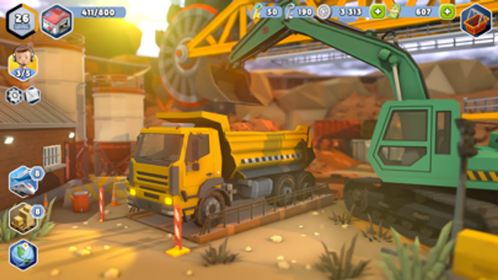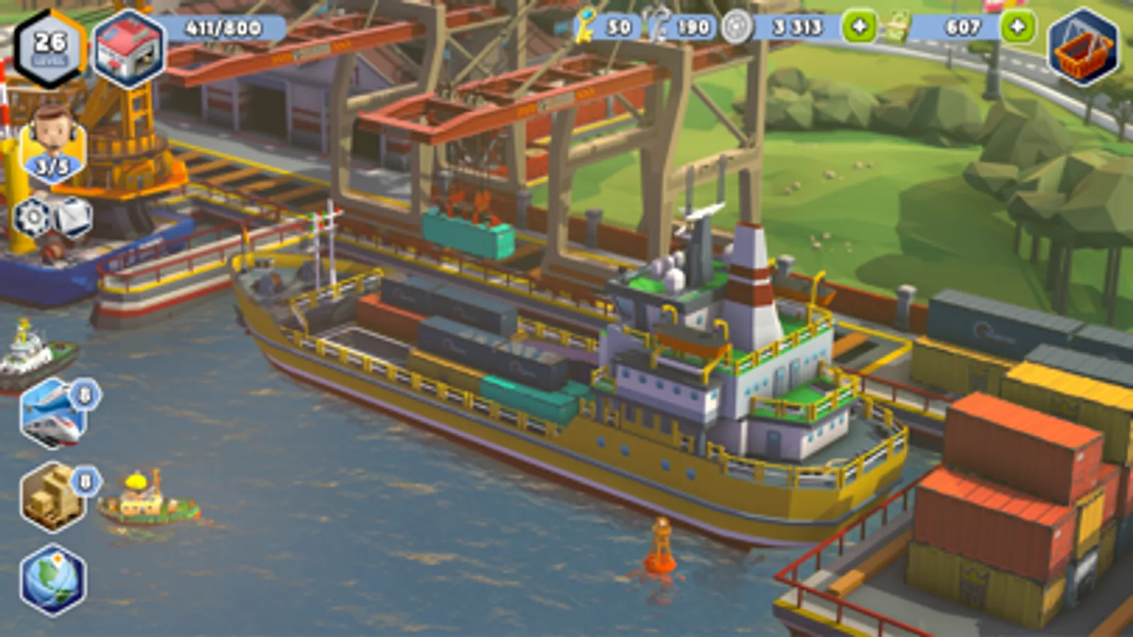 Collect vehicles, deliver cargo, finish contracts and even master city building to become ultimate transport tycoon! Find the best strategy and your cargo will flood every train station, airport and dock in every port city in the world. On land, sea and in the air, your transport empire will have no bounds. Collect trains, trucks, ships and planes to complete transport contracts on ever-changing map full of interesting people and places. Conquer every seaport with your cargo ships, satisfy your transport fever and make your pocket city flourish. It doesn't matter if you are helping with repairing bridges, protecting environment, supplying cool theme park or building amazing space center, you will succeed!