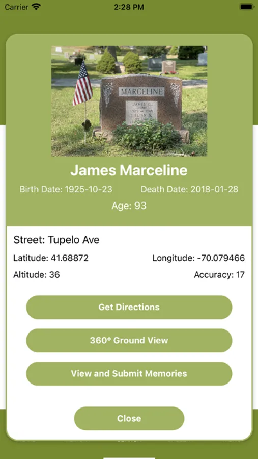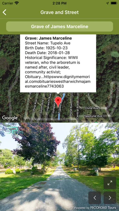 This is a map and informational app for all of the grave sites and the Marceline Arboretum. This provides directions to trees, shrubs, and those interned. The user will be able find those areas of interest via mapping and 360 images. Registered users will be able to add information that will assist in providing useful information about those that interned or other historical and other matters concerning the Arboretum.