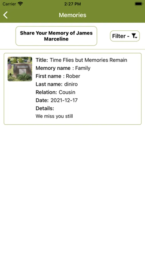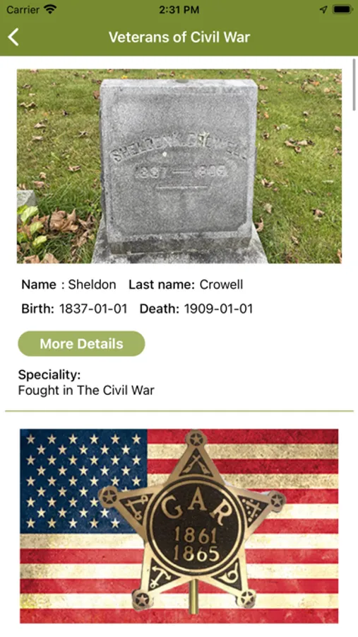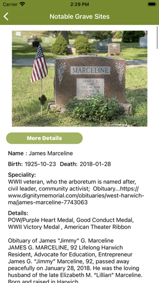 Historical Grave Sites going back to the late 1600's. The App provides a complete user directory with GPS co-ordinates for gravesites and the Marceline Arboretum.