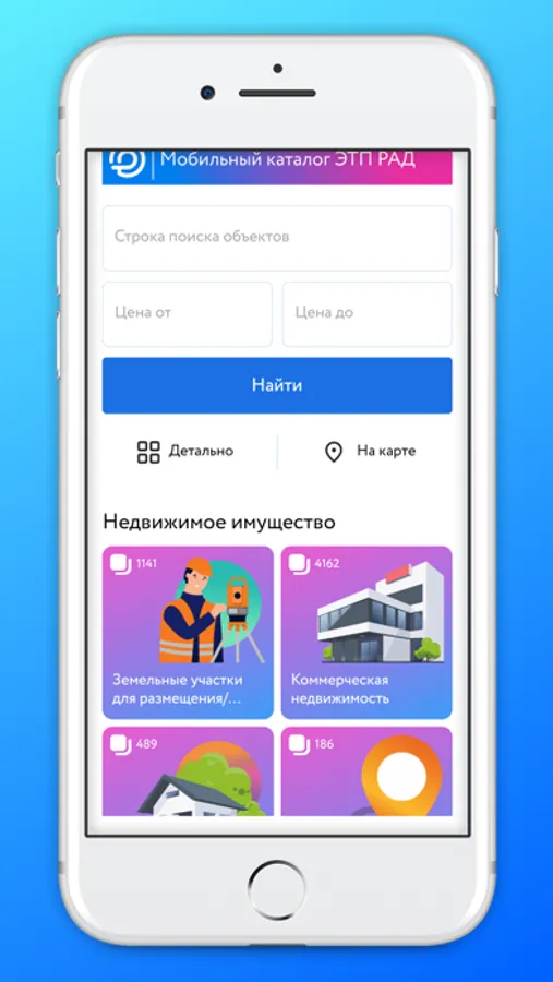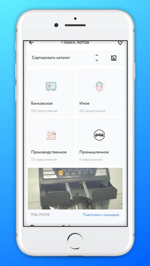 Установите приложение РАД, чтобы держать руку на пульсе аукционного рынка материальных и нематериальных активов и получать подробную информацию о лотах, выставленных на торги.