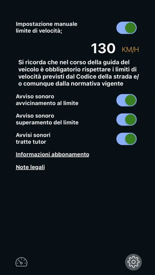 Scelta limite velocità impostato manualmente (molto utile per i neopatentati con limiti di velocità ridotti)