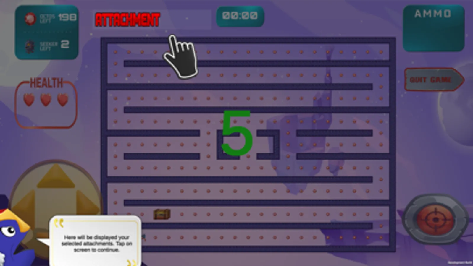 When your bullets are gone you'll need to find an ammo box and avoid enemies on your way. Points are added for every enemy eliminated and each Octo you collect, but be careful as points will be deduced for collisions with enemy.