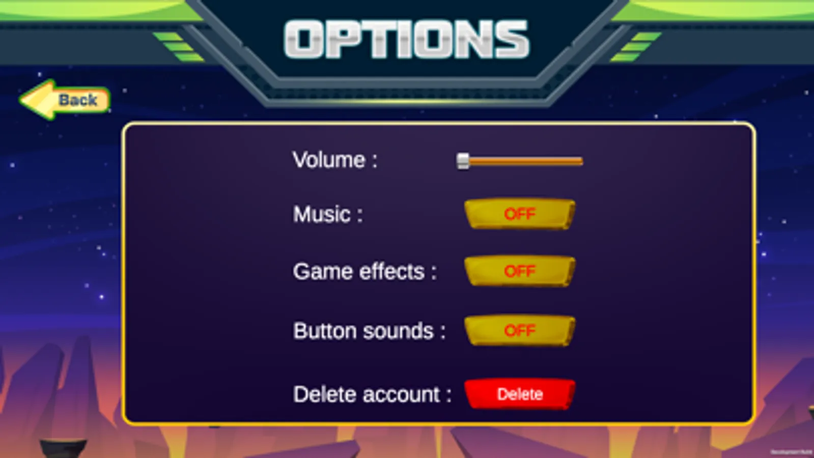 Profile Menu - shows player information ( games played, games won, enemies killed, and highest score).