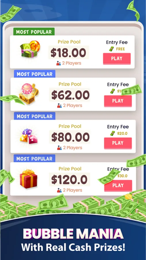 Bubble 3D is one of the most exciting and endless Skills-based bubble blast puzzle game that give you a chance to earn cash prizes. With this bingo pop game, a player can have exciting challenges & earn real cash in no time. In this unique Skillz game, players rediscover the classic bubble shooter adventure on their device with touch controls. Further, along with rewards, thousands of pop bubbles blast bingo effects with endless levels as addiction gets even more challenging. Enjoy the grotto real money bubble shooter puzzle experience anywhere and whenever you want.