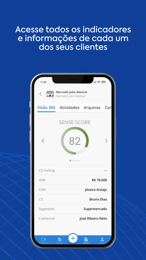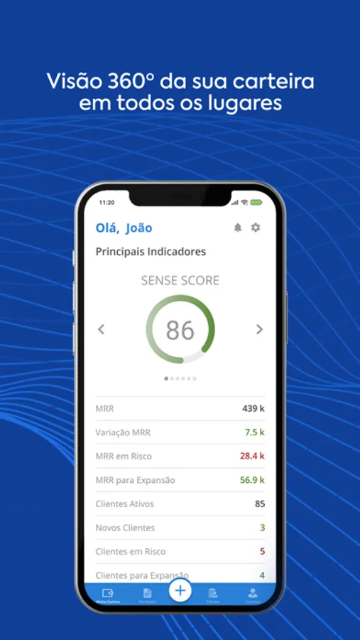 O app mobile SenseData permite fazer a gestão dos seus clientes diretamente da palma da sua mão, possibilitando obter uma visão 360º da saúde da sua carteira e de cada cliente no detalhe, além de acessar as atividades e tarefas que você tem programada.