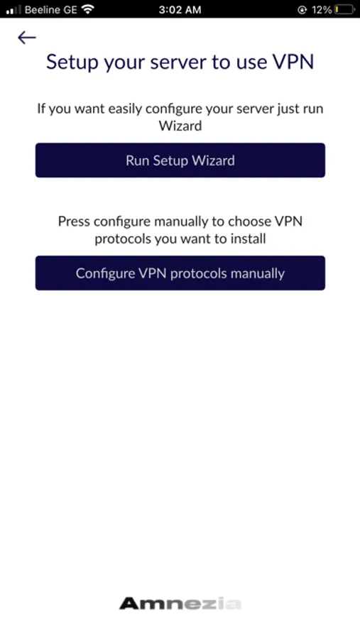 AmneziaVPN provides two basic scenarios for the initial setup of a new server - a wizard mode for general users with no knowledge of VPN protocols, and a mode for advanced users, where you can select the desired VPN protocol from a list of supported protocols.