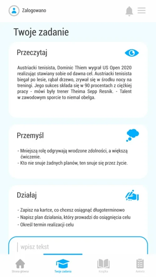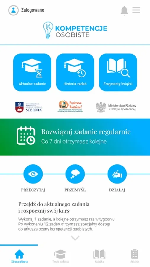 Jest to aplikacja, która pozwoli Ci w trakcie 12 tygodniowego kursu rozwinąć swoje kompetencje osobiste i społeczne